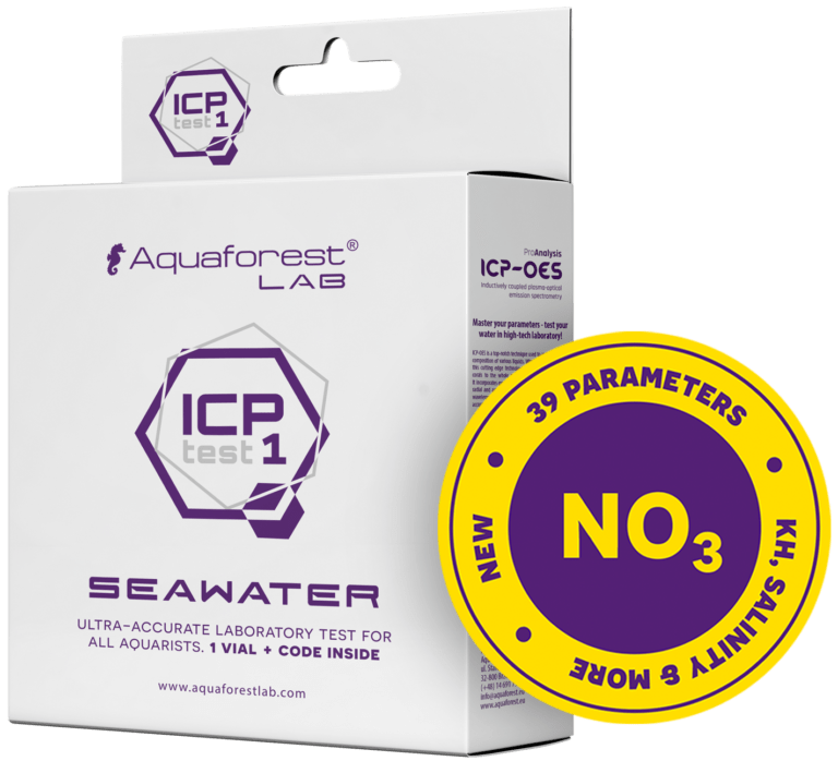 Aqua forest ICP test 5+1 ICP-OES-test is ontworpen om de parameters van zout water uit uw aquarium en uw RO-water grondig te analyseren. De set bevat 1 testflesje, een individuele testcode en een envelop om de test naar ons laboratorium te verzenden. Een enkele ICP-OES-test levert nauwkeurige resultaten van 39 parameteranalyses. In ons laboratorium onderzoeken we: Li, Si, I, Ba, Mo, Ni, Mn, Be, Cr, Co, Fe, V, Zn, Hg, Se, Cd, Sn, Sb, As, Al, Pb, Ti, Cu, La, Sc, W, Na, Ca, Mg, K, Br, B, Sr, S, P, PO4 + zoutgehalte en KH, NO3!