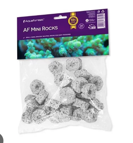 De Aquaforest Frag Rocks white zijn speciaal ontworpen fragstenen voor het bevestigen van koraalfrags in zee- en rifaquaria. De stenen hebben een natuurlijke vorm en een paarse coating die lijkt op kalkalgen, waardoor ze direct mooi integreren in het rif en minder opvallen tussen het levend steen.