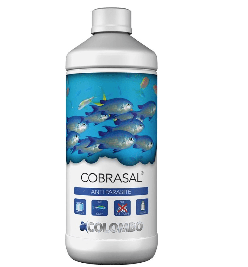 Colombo Cobrasal is werkzaam tegen huidparasieten bij zeewatervissen zoals Oödinium, Cryptocaryon en anderen. Te gebruiken in een quarantaine aquarium. Cobrasal kan NIET gebruikt worden wanneer er lagere dieren aanwezig zijn zoals anemonen, garnalen en koralen. Symptomen van deze ziektes variëren per parasiet: van puntjes of vlekken tot een grauwe fletse kleur en huid.