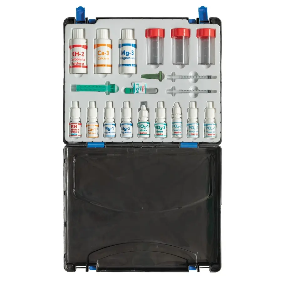 Een betrouwbare testsets voor het meten van de Carbonaathardheid (KH), het Calciumgehalte (Ca), het Magnesiumgehalte (Mg), het Nitraatgehalte (NO3) en het fosfaatgehalte in een handige kunststof koffer. De onderdelen uit de losse Colombo testsets kunnen worden gebruikt om verbruikte materialen uit de testkoffer aan te vullen.