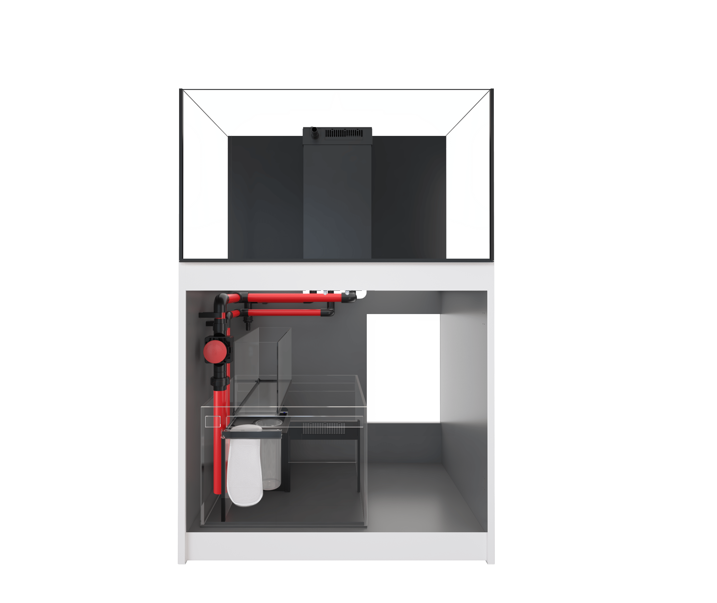 Het aquarium is vervaardigd uit ultrahelder rimless glas, waardoor een maximale lichtdoorlaat en helder zicht op het rif ontstaat. Het stevige aquariummeubel is speciaal ontworpen om het gewicht van het systeem veilig te dragen en biedt voldoende ruimte voor techniek en onderhoud.